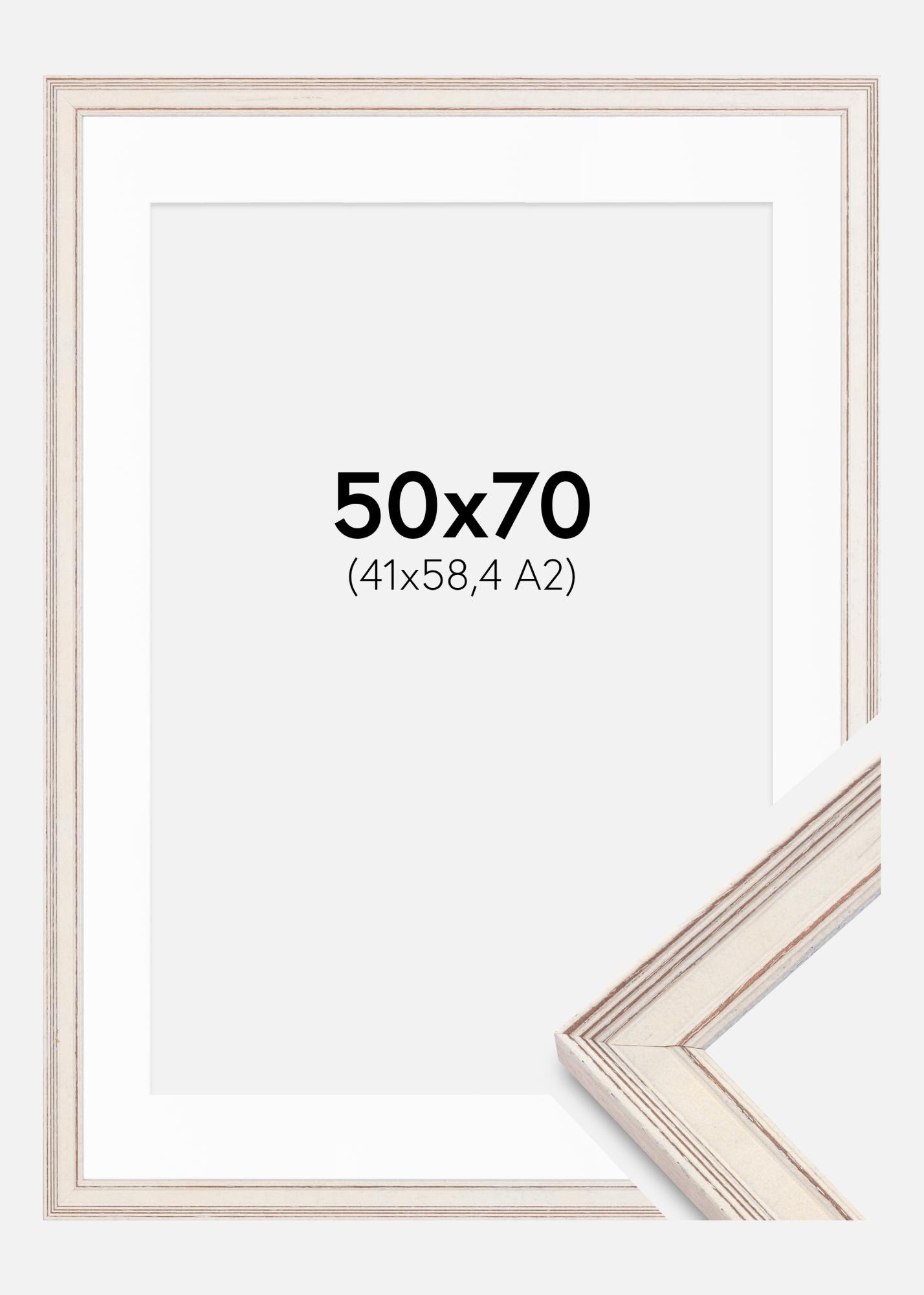 Cornice Shabby Chic Bianco 50x70 cm - Passe-partout Bianco 42x59,4 cm (A2)