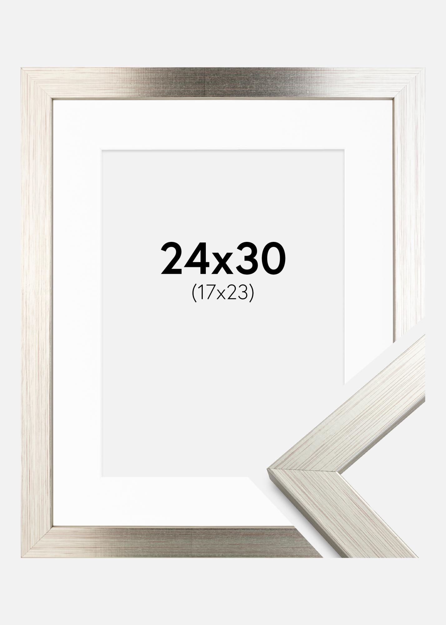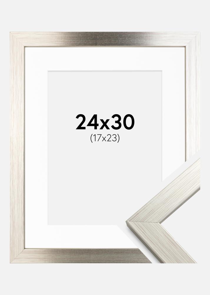 Cornice Silver Wood 24x30 cm - Passe-partout Bianco 18x24 cm