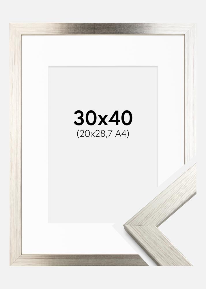 Cornice Silver Wood 30x40 cm - Passe-partout Bianco 21x29,7 cm (A4)