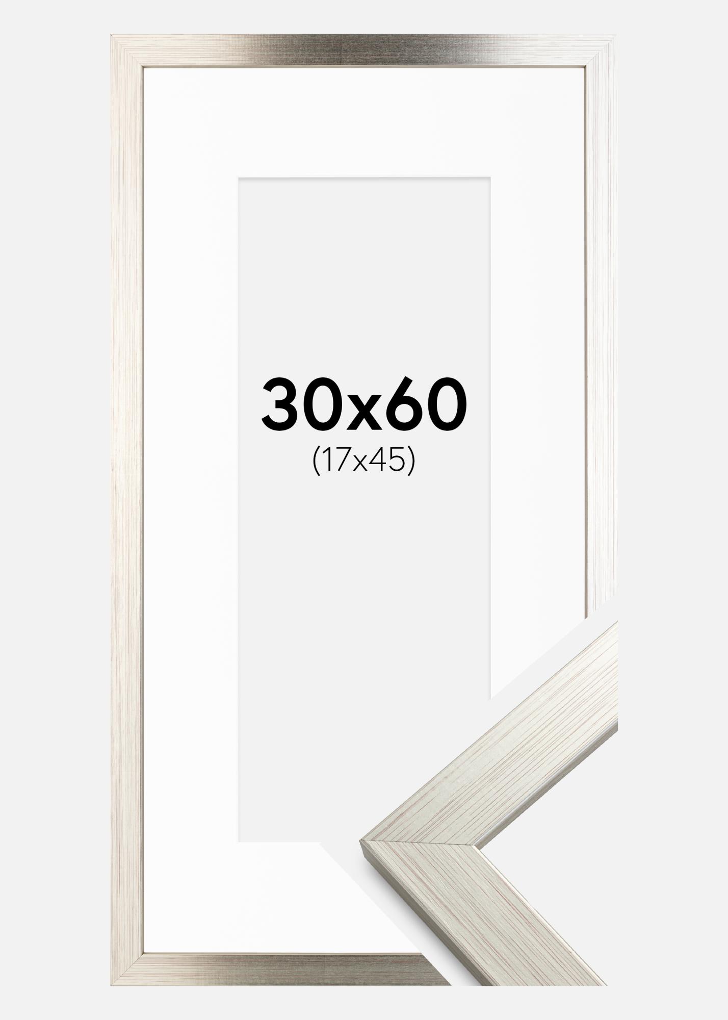 Cornice Silver Wood 30x60 cm - Passe-partout Bianco 18x46 cm