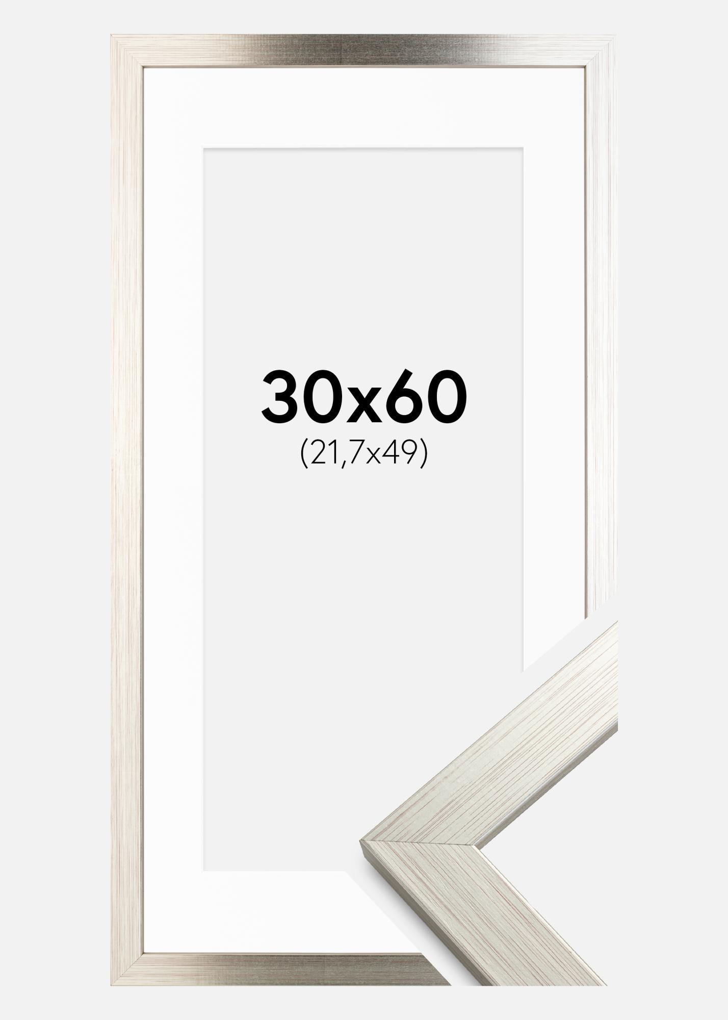 Cornice Silver Wood 30x60 cm - Passe-partout Bianco 22,7x50 cm