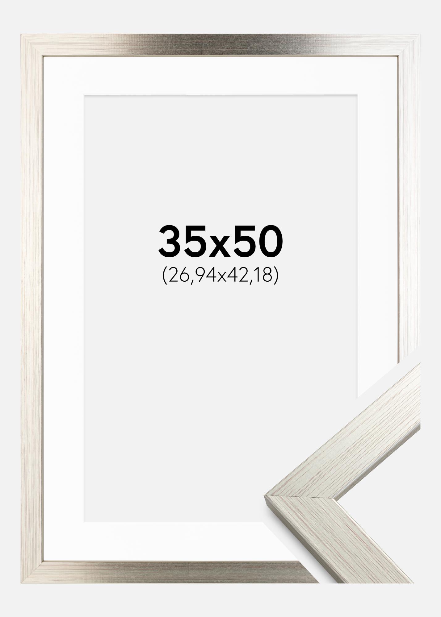 Cornice Silver Wood 35x50 cm - Passe-partout Bianco 11x17 inches