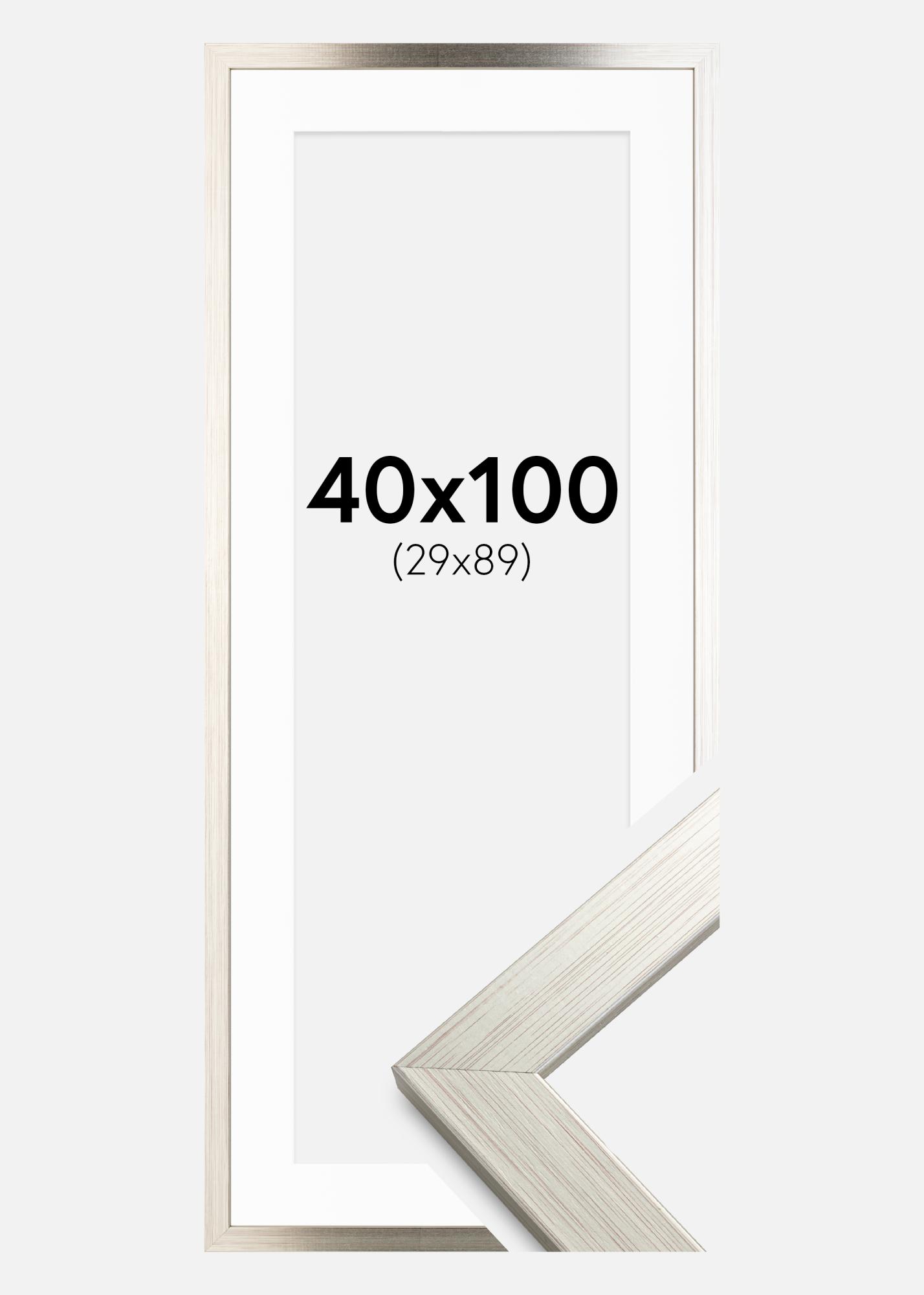 Cornice Silver Wood 40x100 cm - Passe-partout Bianco 30x90 cm
