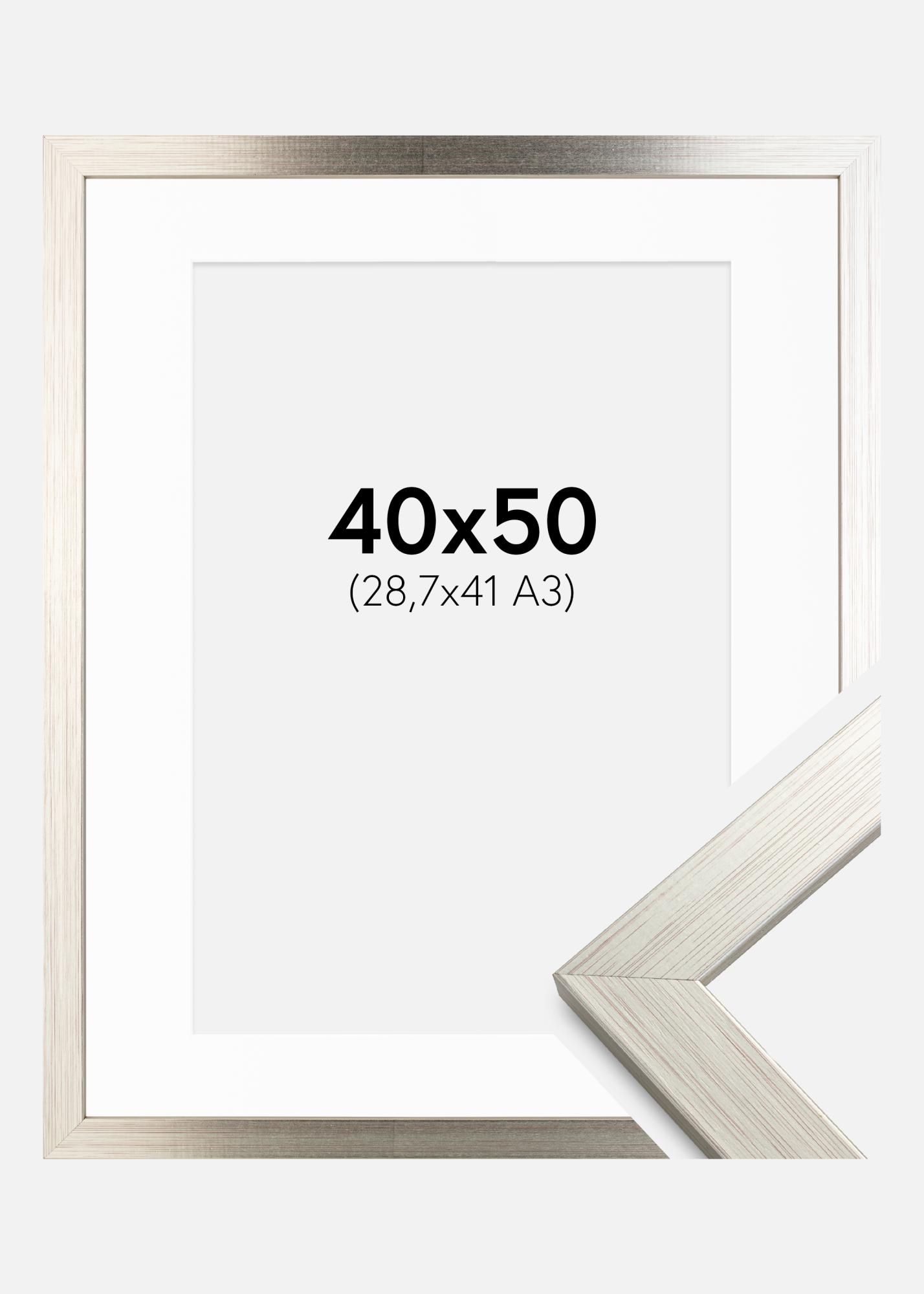 Cornice Silver Wood 40x50 cm - Passe-partout Bianco 29,7x42 cm (A3)