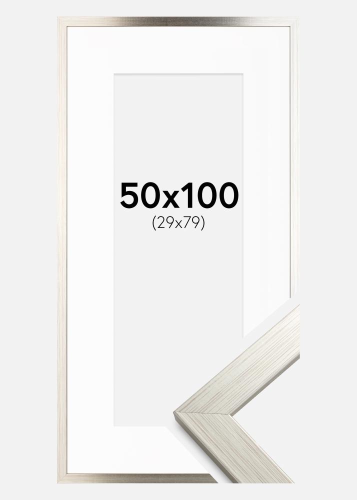 Cornice Silver Wood 50x100 cm - Passe-partout Bianco 30x80 cm