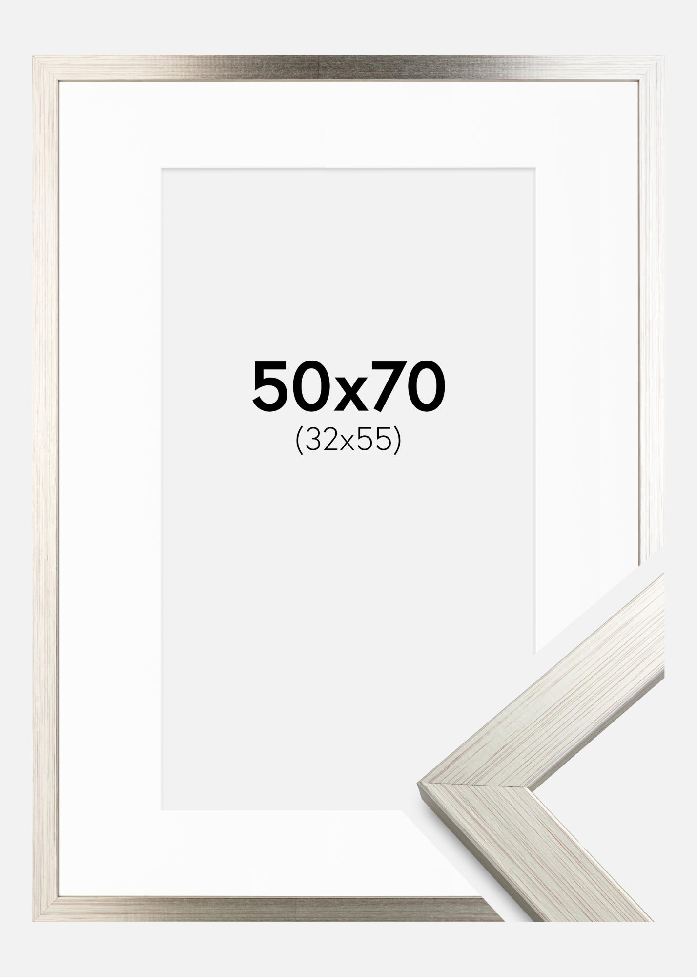 Cornice Silver Wood 50x70 cm - Passe-partout Bianco 33x56 cm