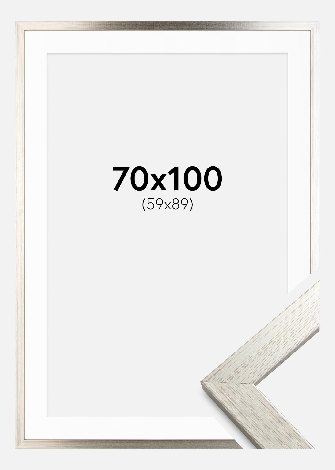 Cornice Silver Wood 70x100 cm - Passe-partout Bianco 60x90 cm