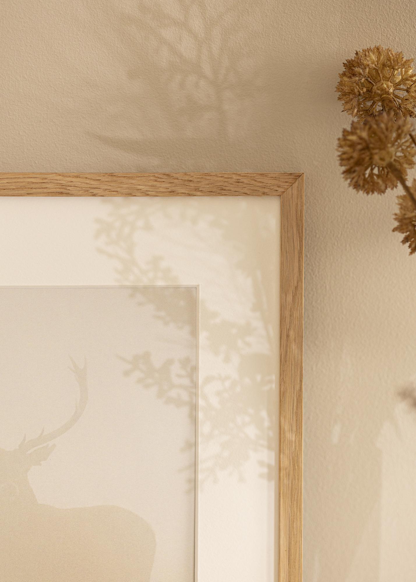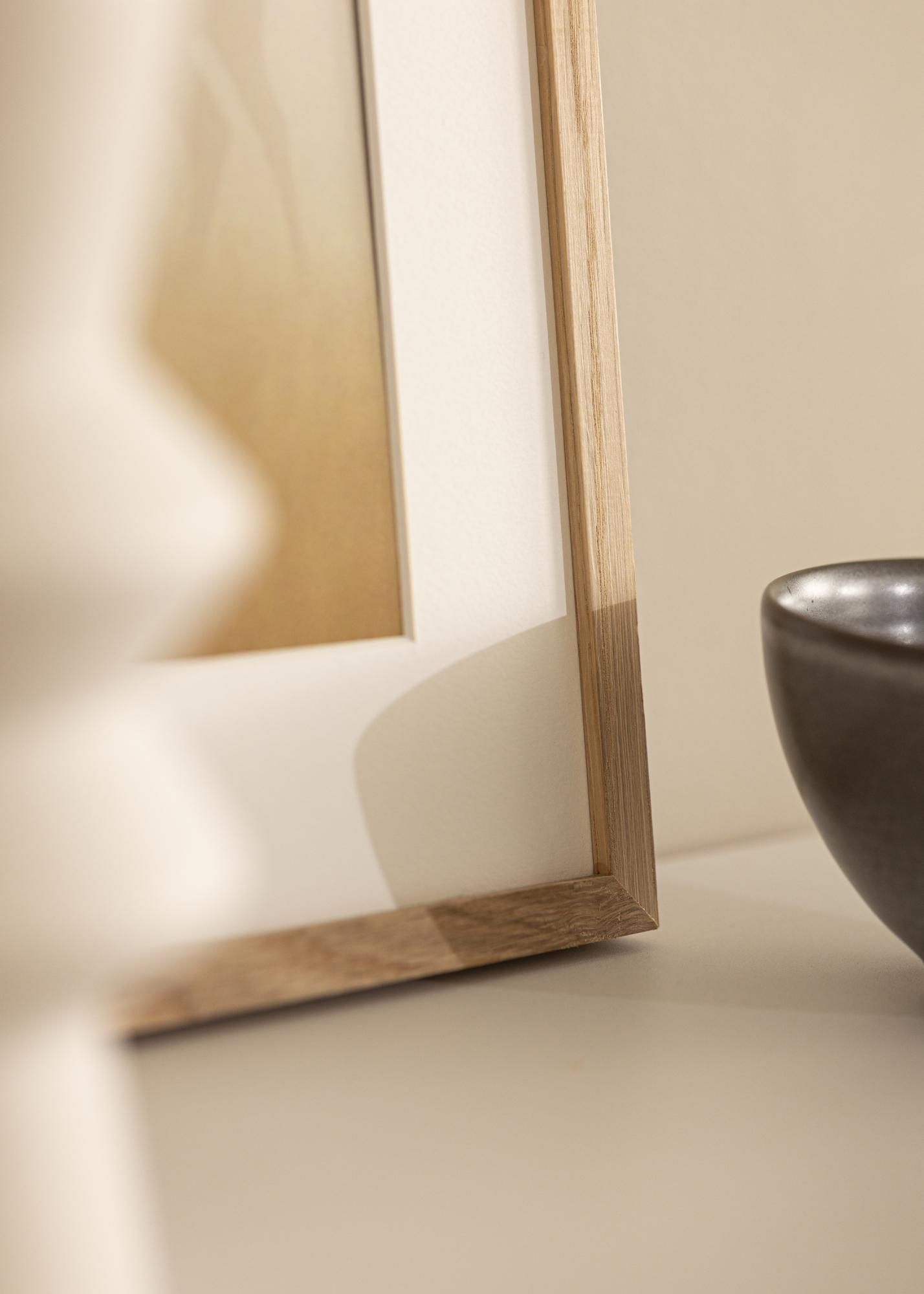 Soul Rovere è una cornice in rovere massello con un profilo elegante e angolare e una larghezza della cornice di 13,5 mm. La profondità della cornice di 22 mm fa sì che la cornice sporga leggermente dal muro, creando un effetto tridimensionale affascinante. Questa profondità, combinata con il solido legno di rovere, conferisce alla cornice una sensazione di robustezza e solidità. È una cornice dal design essenziale e lineare, che ha un aspetto moderno, ma allo stesso tempo una cornice in legno autentico è senza tempo e si adatta sia alle case alla moda che a quelle classiche.