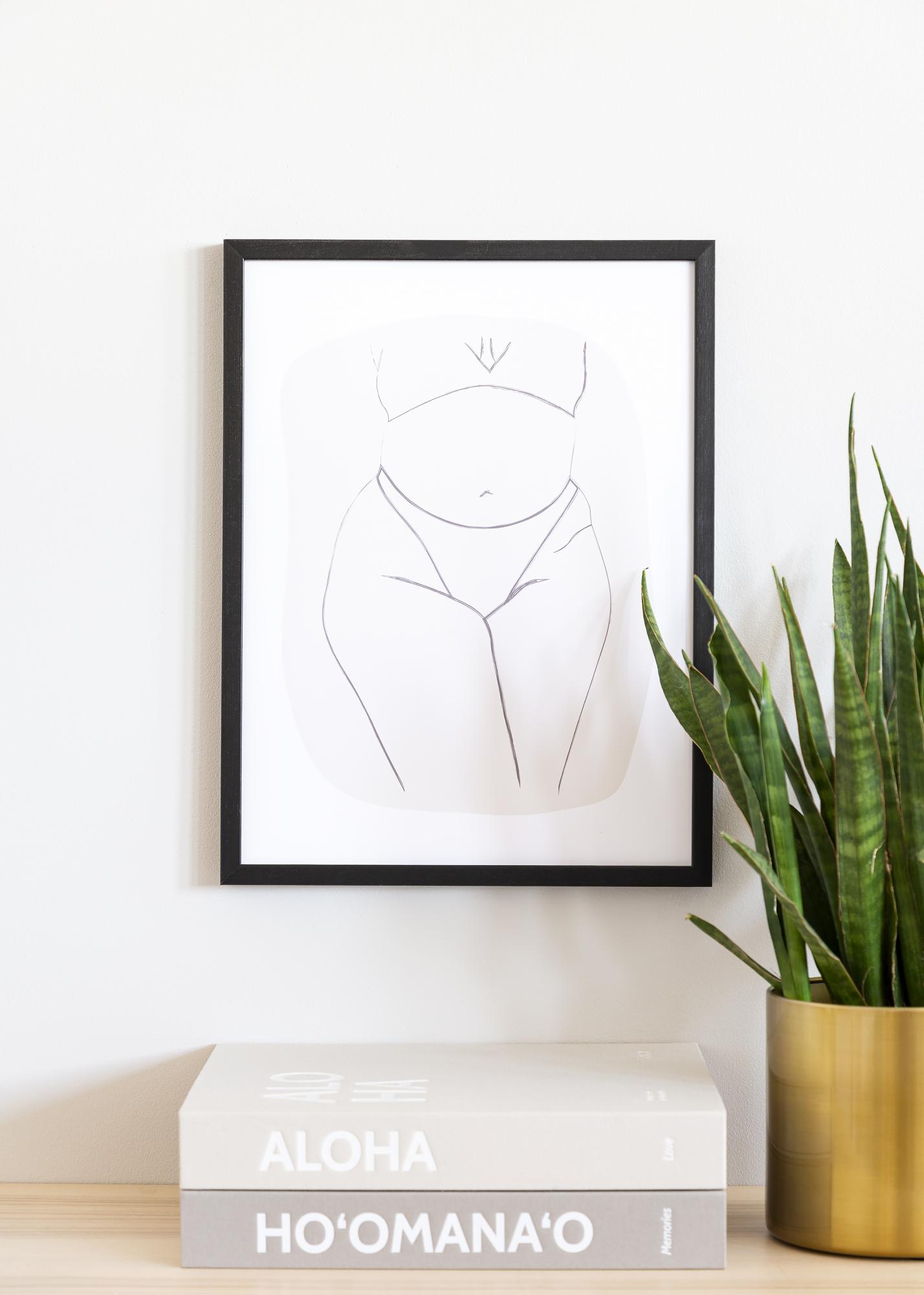 Soul Nero è una cornice in legno moderna, il cui ampio bordo di 13,5 mm crea un grande contrasto tra l'immagine e il muro. È perfetto per coloro che sono alla ricerca di una cornice che metta in risalto il loro motivo e attiri l'attenzione sull'intero quadro. Il profilo ampio e angolato crea un'espressione molto elegante, che viene enfatizzata dal colore nero dipinto. Il retro della cornice è realizzato in MDF marrone e dotato di ganci per appendere il quadro sia in orizzontale che in verticale. Puoi facilmente montare la tua immagine sollevando i perni metallici che tengono il retro in posizione.
