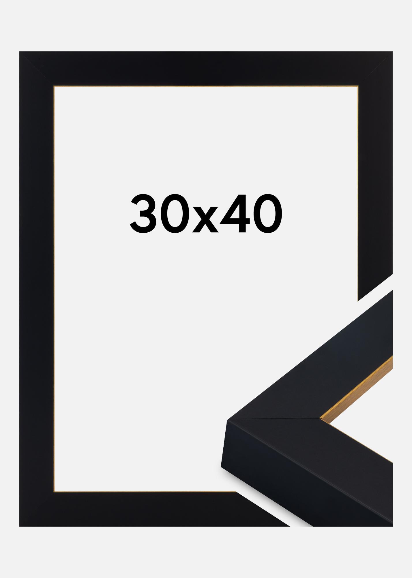 Questa elegante Cornice è perfetta per valorizzare i tuoi soggetti preferiti nel formato 30x40 cm. Con un design moderno e raffinato, unisce una superficie liscia e lucida in Nero a un bordo elegante color Oro. Il profilo sottile dona un aspetto essenziale e grafico che mette al centro l’immagine, rendendola una scelta eccellente sia per fotografie che per poster.