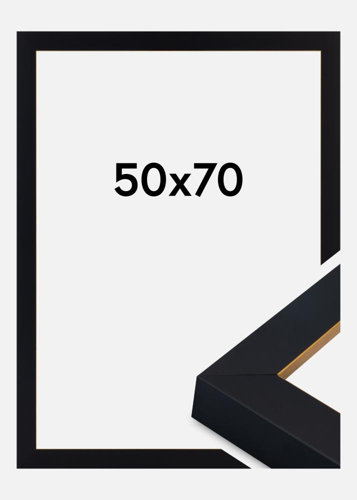 Questa elegante Cornice è perfetta per valorizzare i tuoi soggetti preferiti nel formato 50x70 cm. Con un design moderno e raffinato, unisce una superficie liscia e lucida in Nero a un bordo elegante color Oro. Il profilo sottile dona un aspetto essenziale e grafico, lasciando che il soggetto sia il vero protagonista.