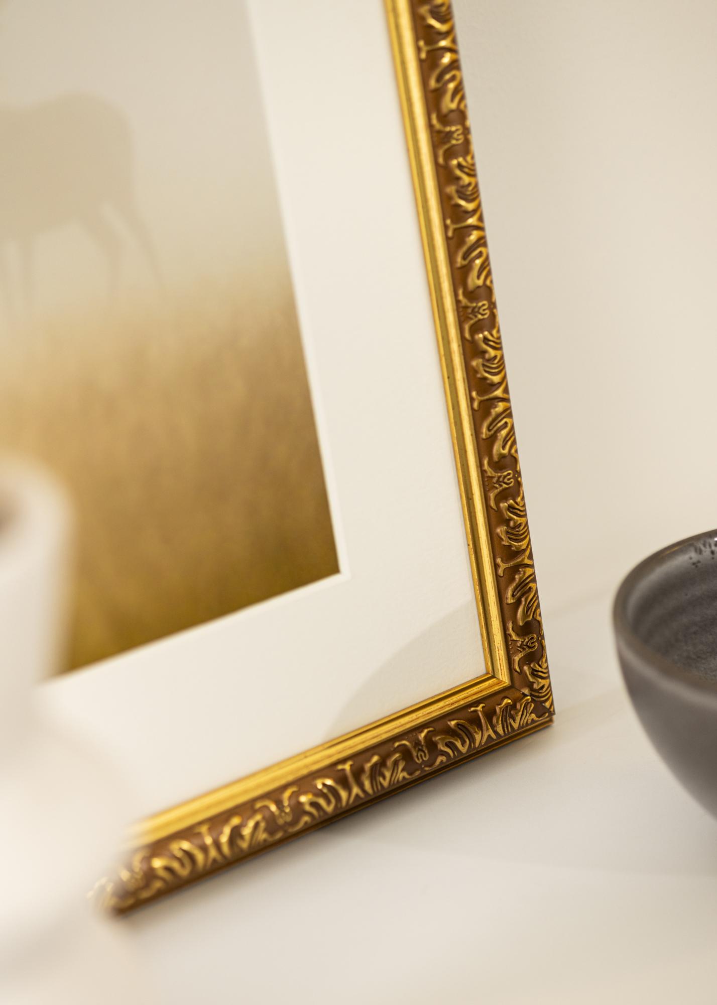 Trasforma le tue foto in opere d'arte con la nostra elegante cornice dorata, completa di un passepartout bianco. Questa cornice fotografica è perfetta per immagini di dimensioni 40x60 cm e offre una cornice sofisticata che mette in risalto il soggetto in modo elegante.