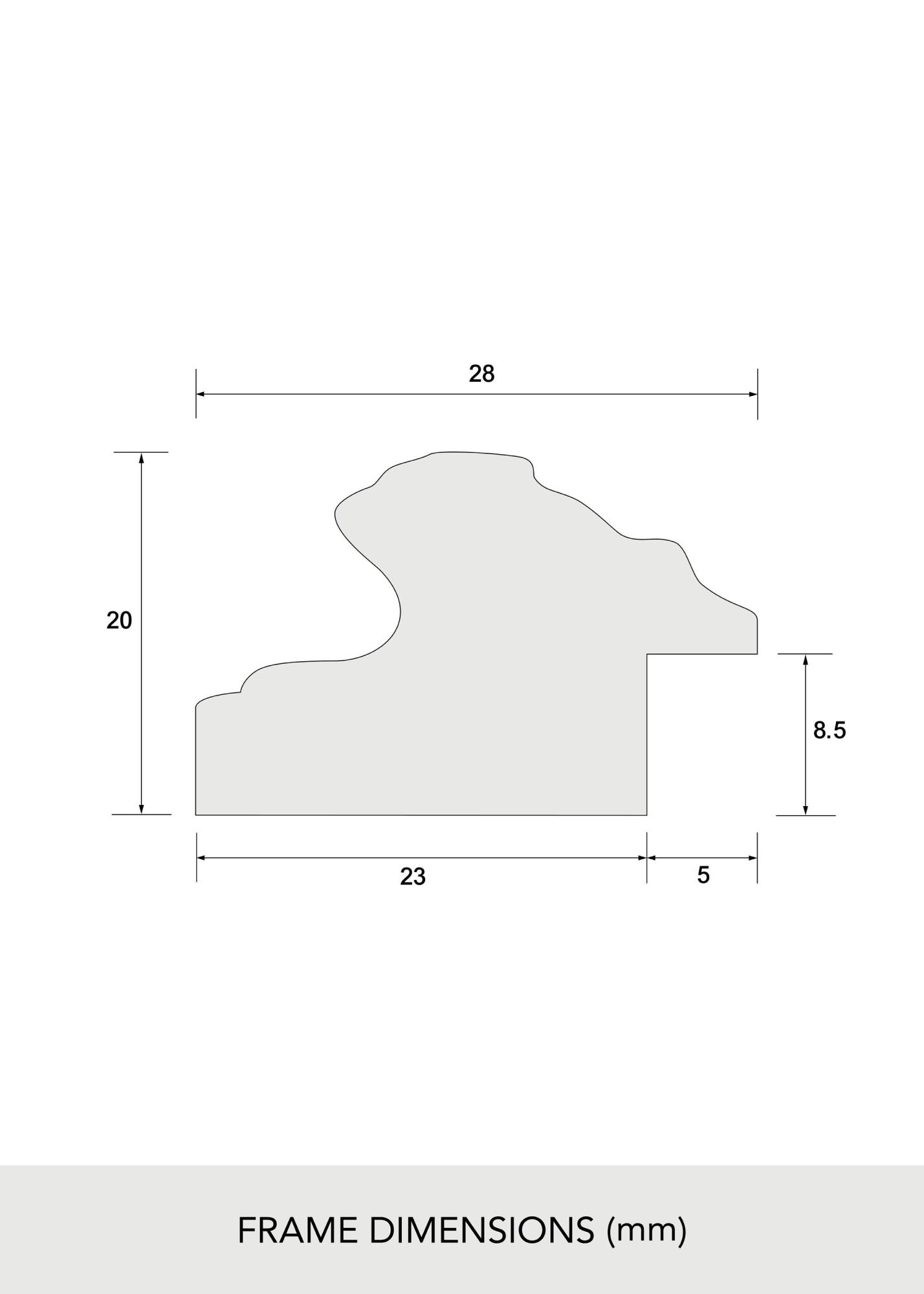 La cornice è realizzata in materiale composito, il che le conferisce una costruzione durevole e leggera. Con una lista di cornice che è larga 28 mm e una profondità di 20 mm, questa cornice offre un'intelaiatura robusta che mette davvero in risalto il tuo soggetto. È equipaggiata con ganci metallici sul retro, il che rende facile appenderla sia orizzontalmente che verticalmente a seconda di ciò che si adatta meglio al tuo spazio.