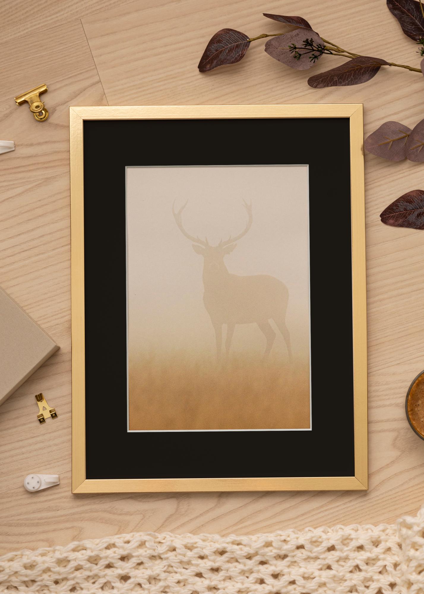 Confezione che include cornice e passepartout nero coordinato. Nell'immagine del prodotto puoi vedere le dimensioni della cornice (in grassetto) e la misura interna del passepartout (tra parentesi). Ricorda che la misura interna del passepartout deve risultare sempre 1 cm più piccola rispetto alle dimensioni dell'immagine desiderata.