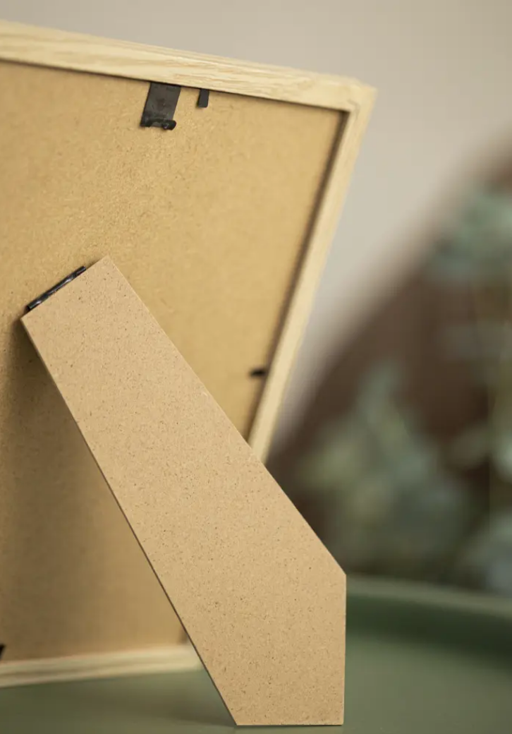 La cornice è realizzata in materiale MDF con una finitura in laminato di colore Rovere e ha un profilo sottile di 14 mm. C'è abbondanza di spazio per completare le tue immagini con un passe-partout di lusso, grazie alla profondità interna della cornice di 12 mm.