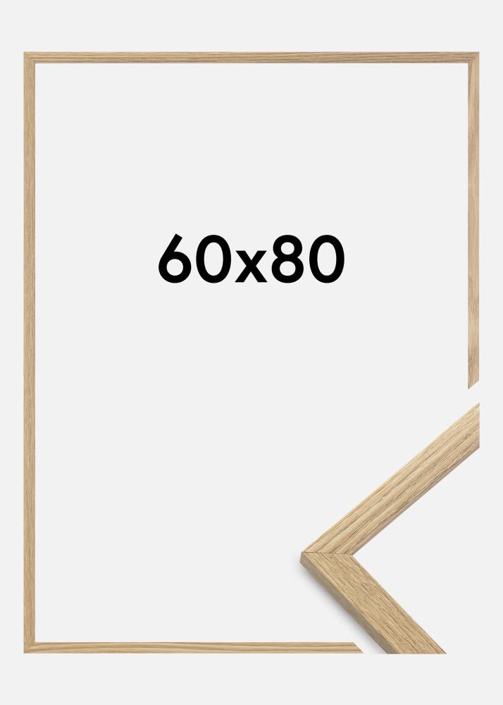 La cornice è realizzata in materiale MDF con una finitura in laminato di colore Rovere e ha un profilo sottile di 14 mm.