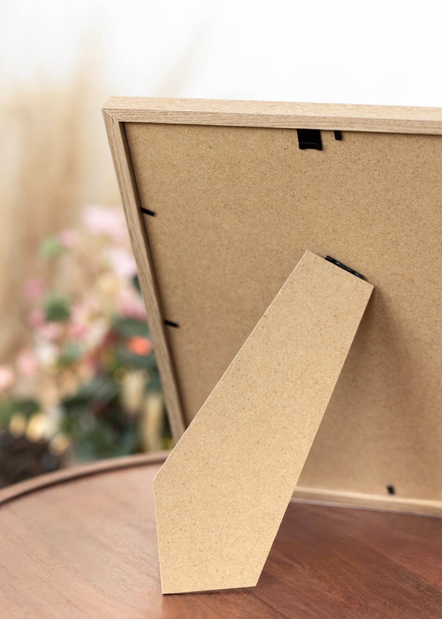 La cornice è realizzata in materiale MDF con una finitura in laminato di colore Rovere e ha un profilo sottile di 14 mm.