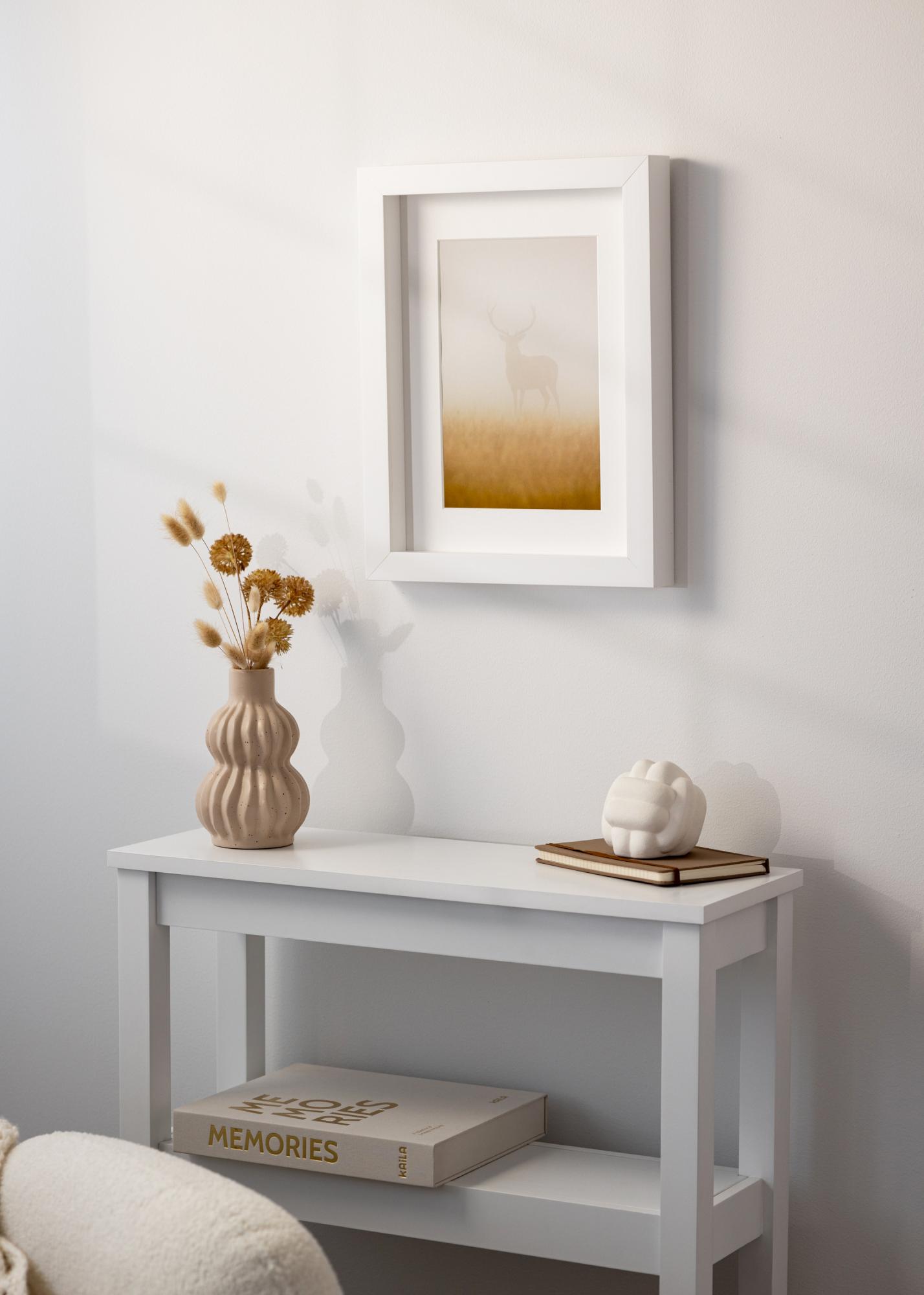 Ram Tyr Bianco è una cornice elegante e raffinata che si adatta perfettamente a mettere in risalto le tue foto e opere d'arte preferite. Con il suo colore bianco, offre un'impressione fresca e moderna che si integra con la maggior parte degli stili di arredamento. Che tu voglia creare una parete armoniosa di quadri o dare a un'immagine singola l'attenzione che merita, questa cornice è un'ottima scelta.