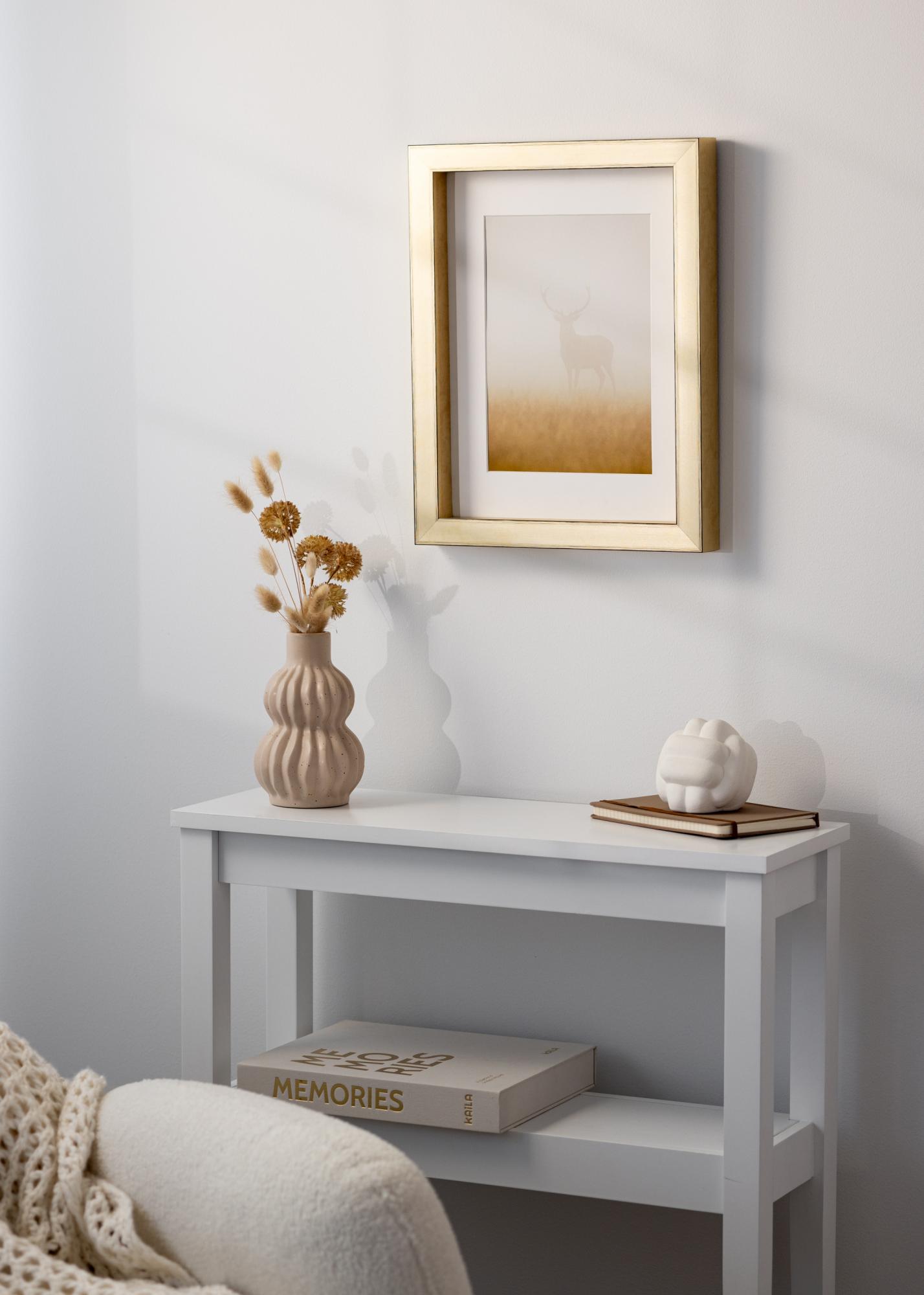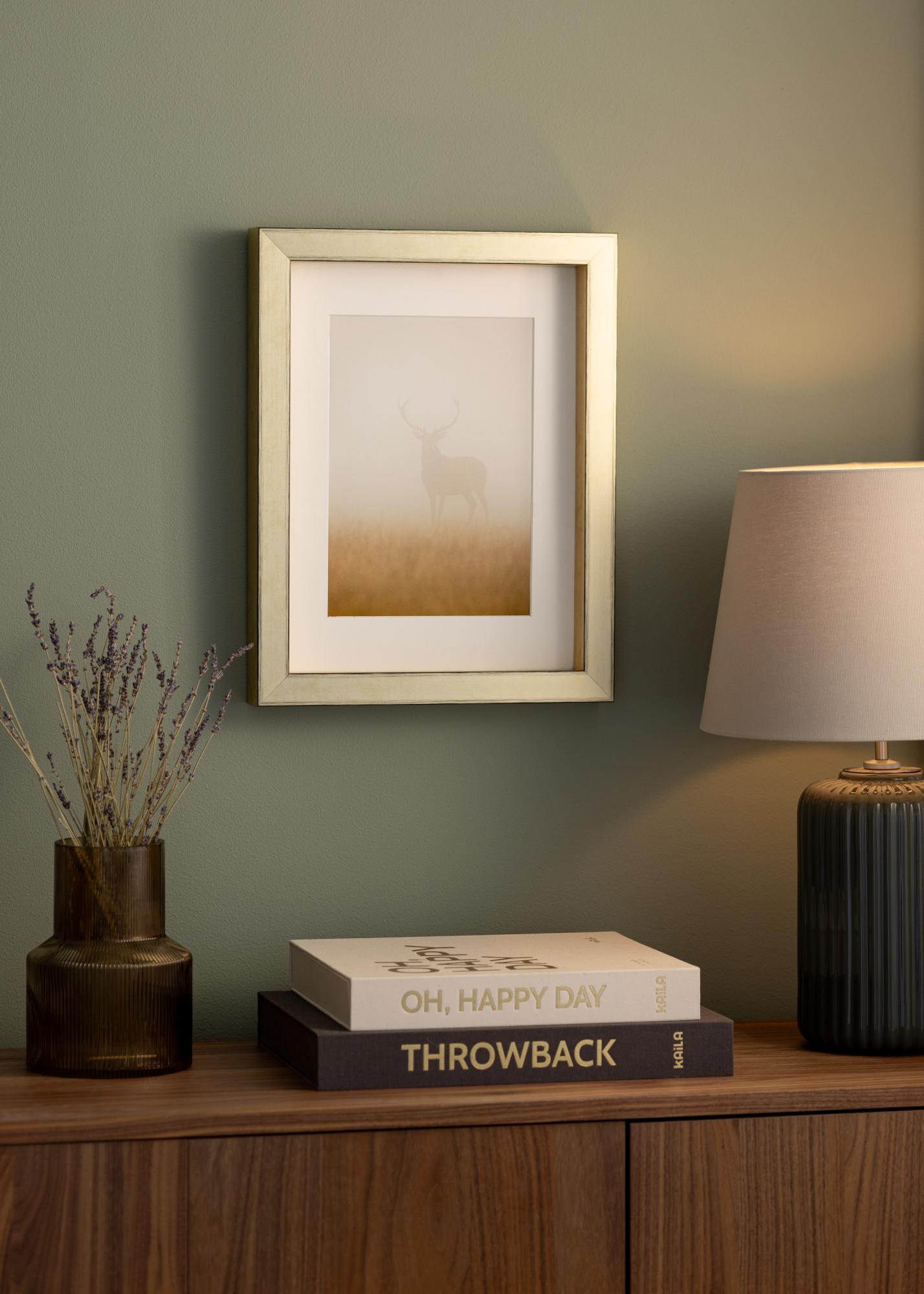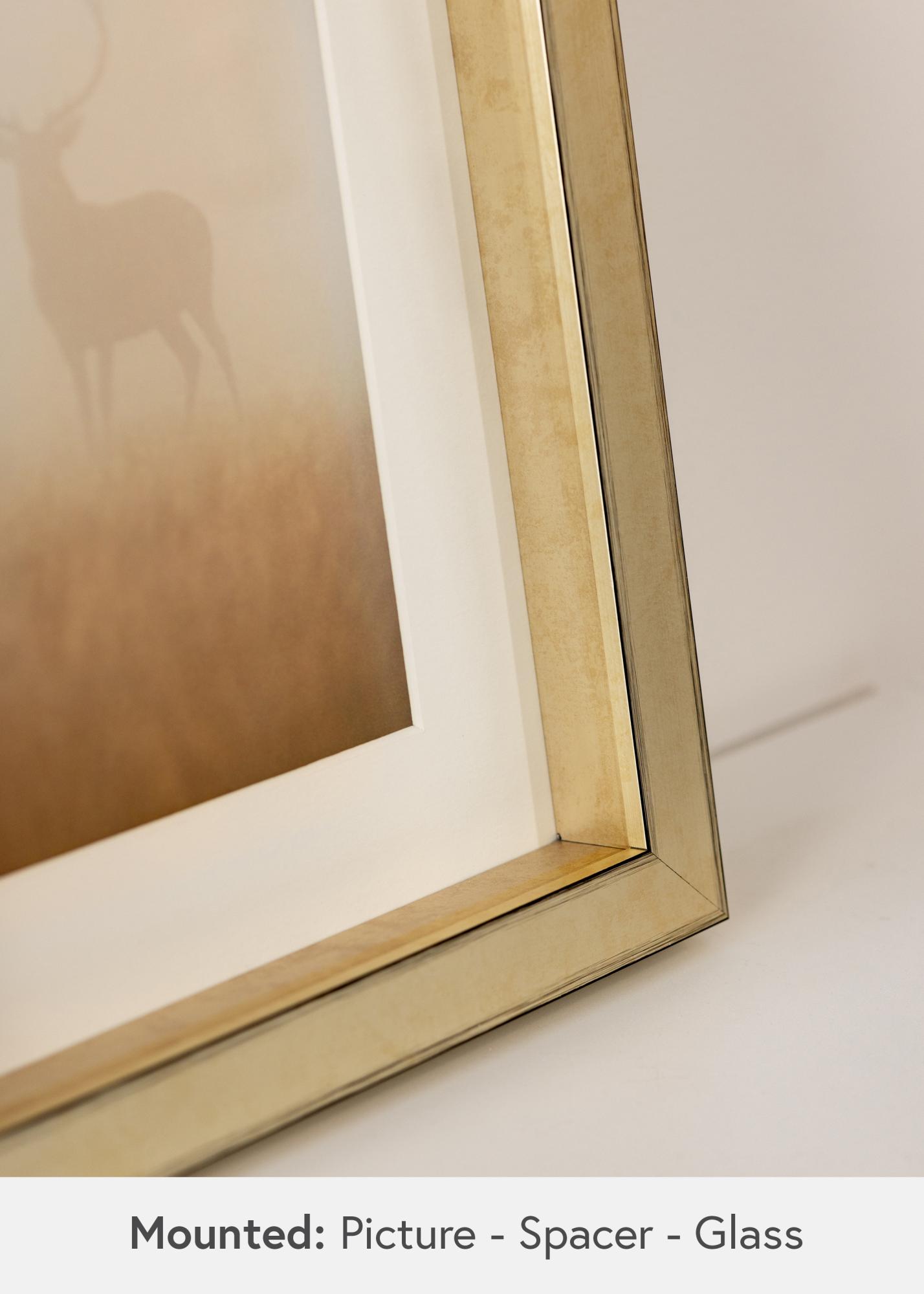 Con Ram Tyr Oro hai la possibilità di personalizzare come vuoi presentare il tuo soggetto. Puoi scegliere di posizionarlo in fondo alla cornice per creare un'impressione fluttuante, o più vicino al fronte per un incorniciamento più tradizionale. Questa flessibilità rende facile abbinare la cornice sia alla tua opera d'arte che allo stile del tuo arredamento.