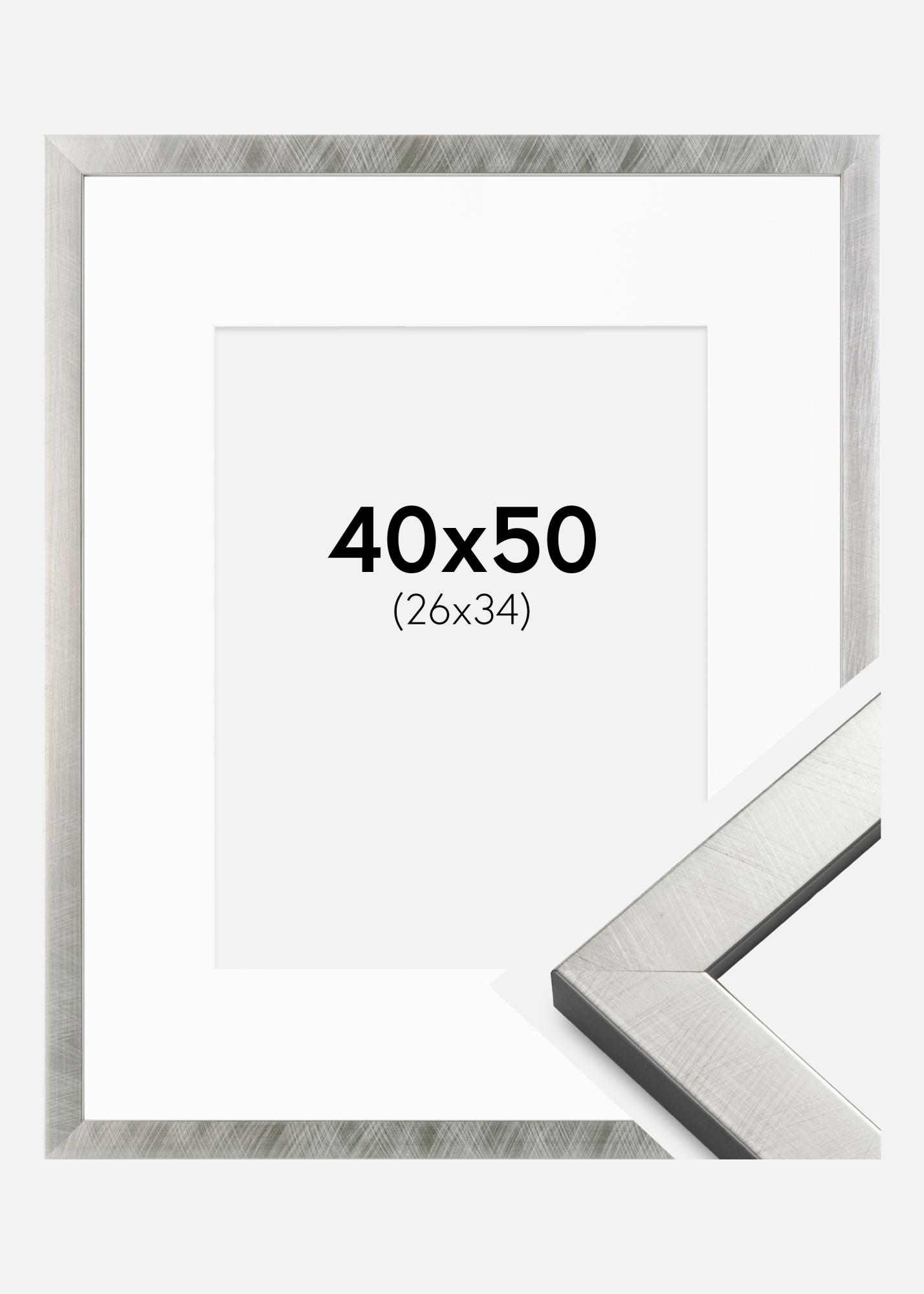 Cornice Uppsala Argento 40x50 cm - Passe-partout Bianco 27x35 cm