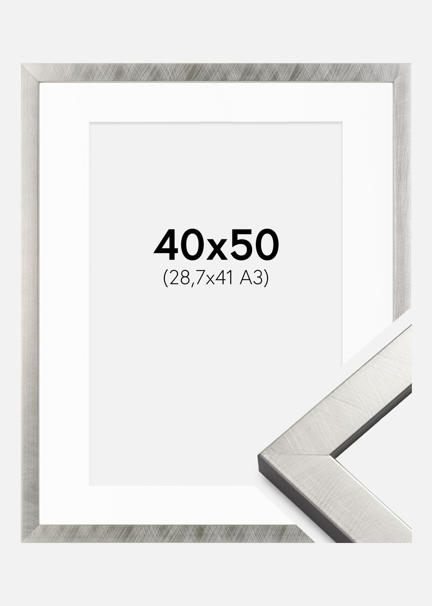 Cornice Uppsala Argento 40x50 cm - Passe-partout Bianco 29,7x42 cm (A3)