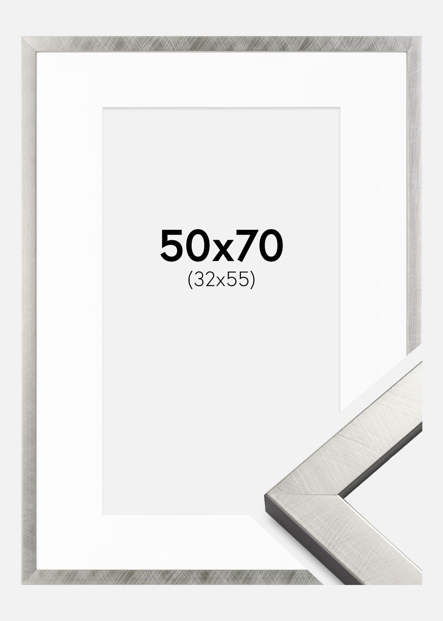Cornice Uppsala Argento 50x70 cm - Passe-partout Bianco 33x56 cm