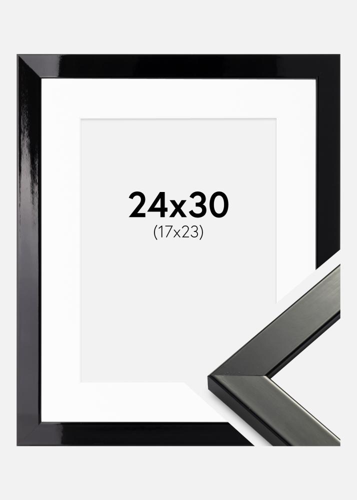Cornice Uppsala Nero Laccato lucido 24x30 cm - Passe-partout Bianco 18x24 cm