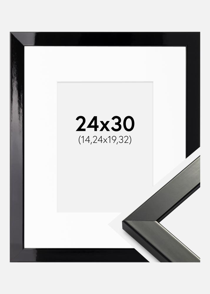 Cornice Uppsala Nero Laccato lucido 24x30 cm - Passe-partout Bianco 6x8 inches