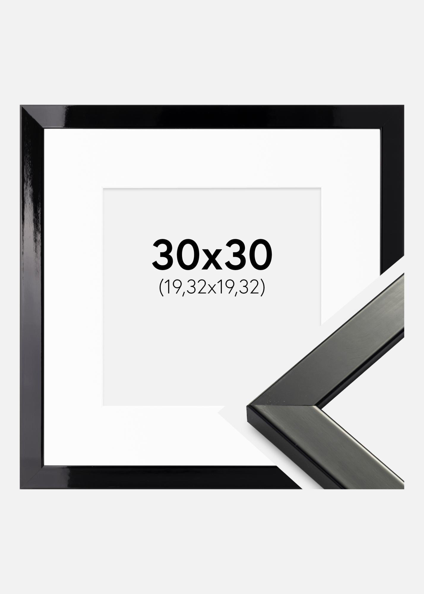 Cornice Uppsala Nero Laccato lucido 30x30 cm - Passe-partout Bianco 8x8 inches