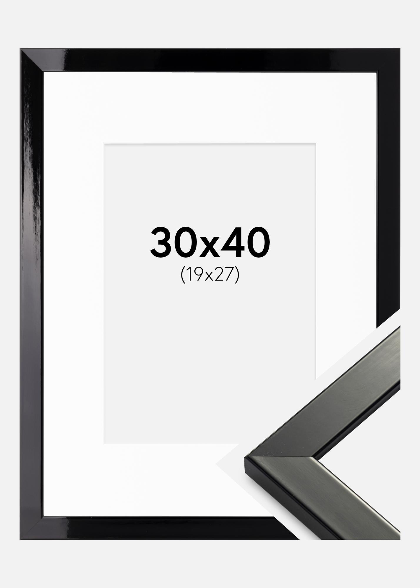 Cornice Uppsala Nero Laccato lucido 30x40 cm - Passe-partout Bianco 20x28 cm