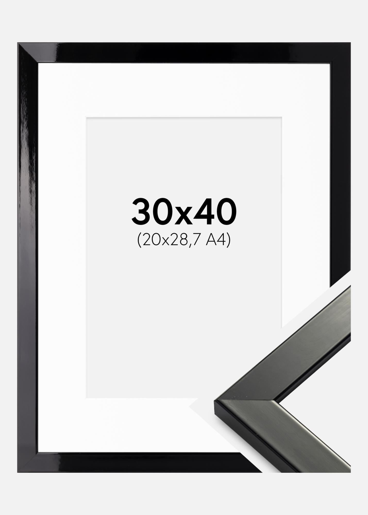 Cornice Uppsala Nero Laccato lucido 30x40 cm - Passe-partout Bianco 21x29,7 cm