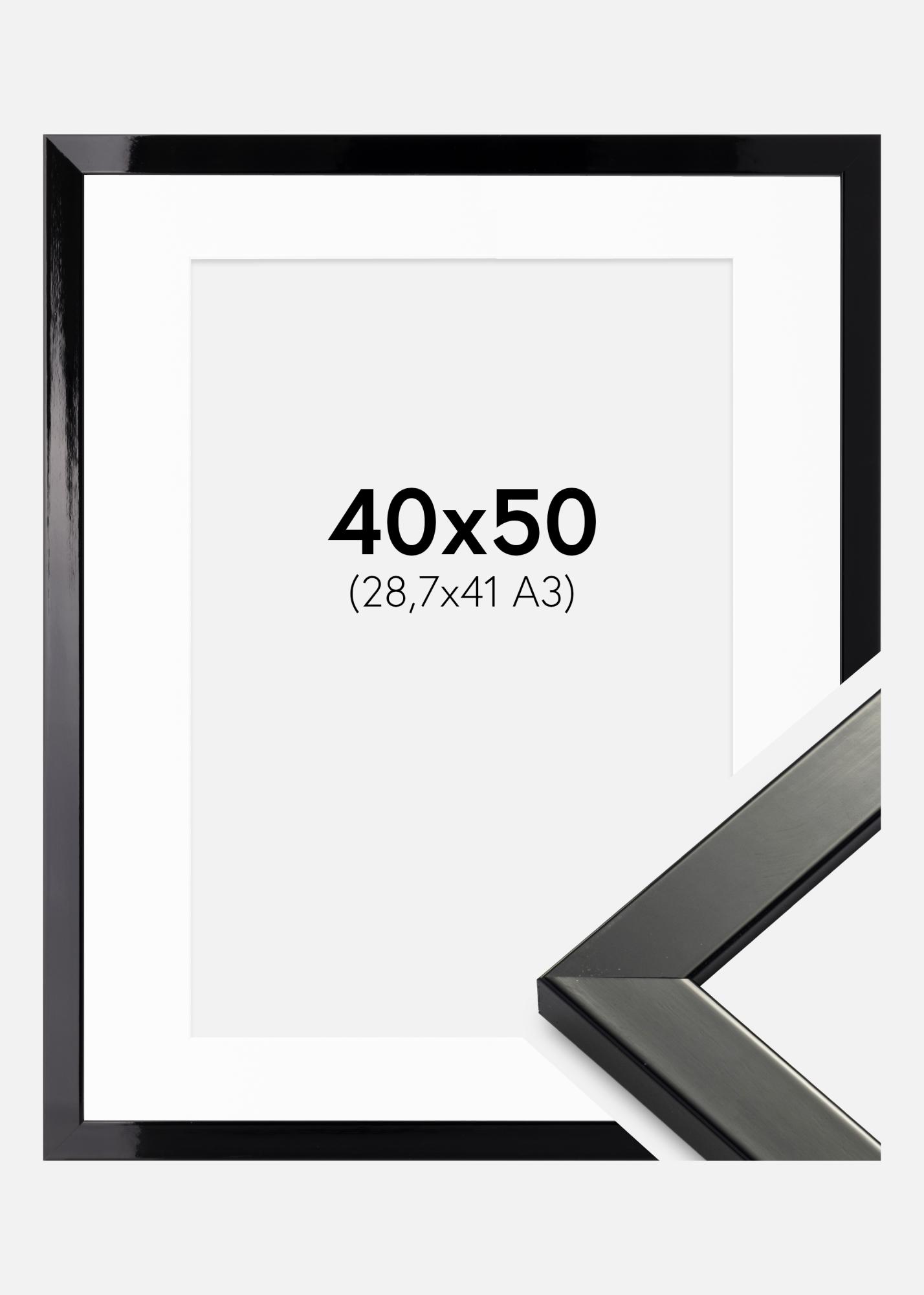 Cornice Uppsala Nero Laccato lucido 40x50 cm - Passe-partout Bianco 29,7x42 cm