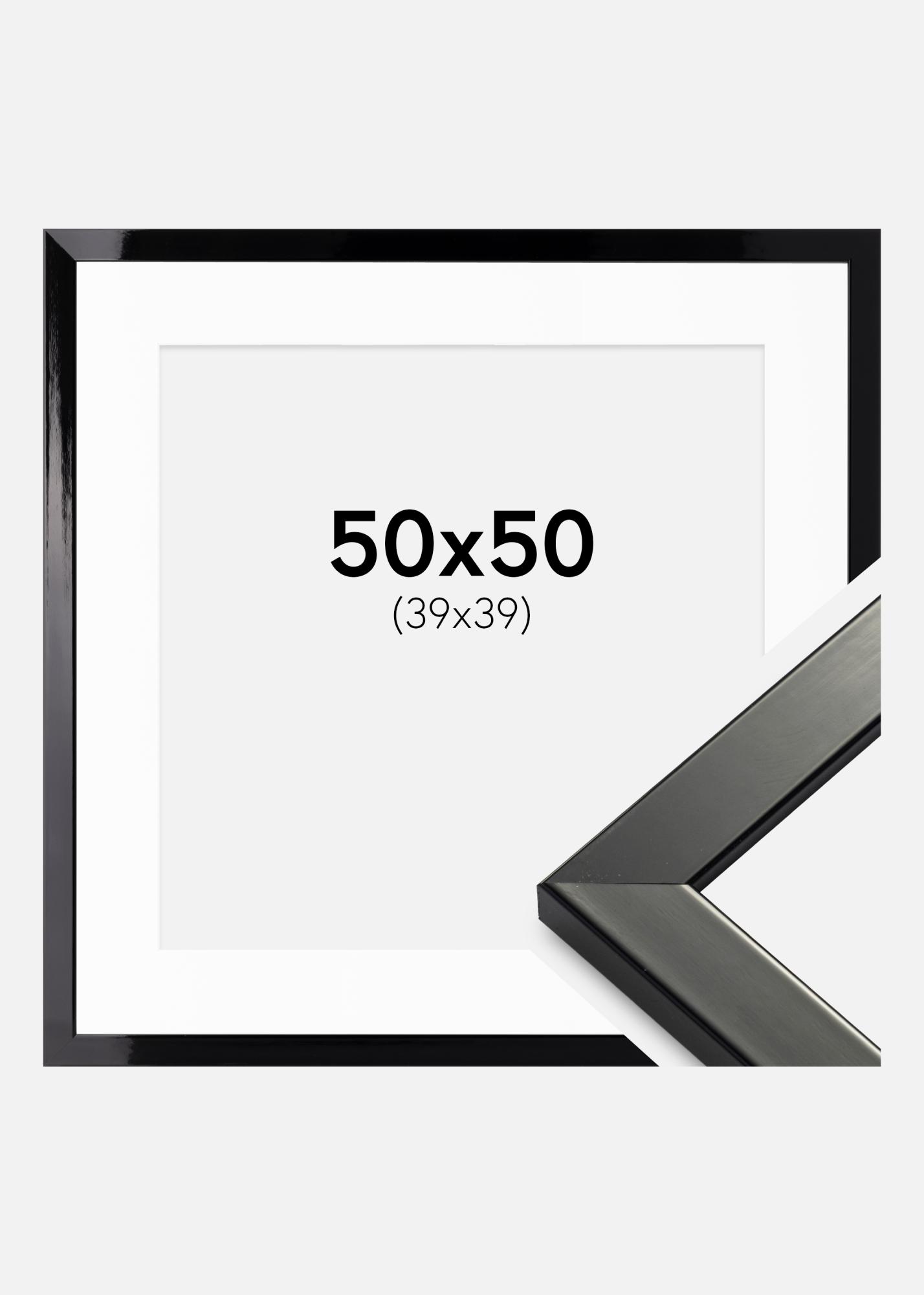 Cornice Uppsala Nero Laccato lucido 50x50 cm - Passe-partout Bianco 40x40 cm