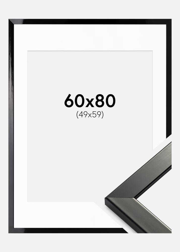 Cornice Uppsala Nero Laccato lucido 60x80 cm - Passe-partout Bianco 50x60 cm