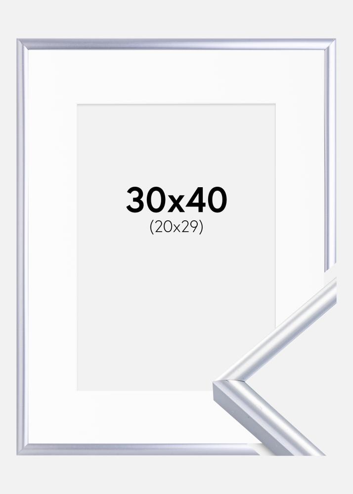 Cornice Victoria Argento 30x40 cm - Passe-partout Bianco 21x30 cm