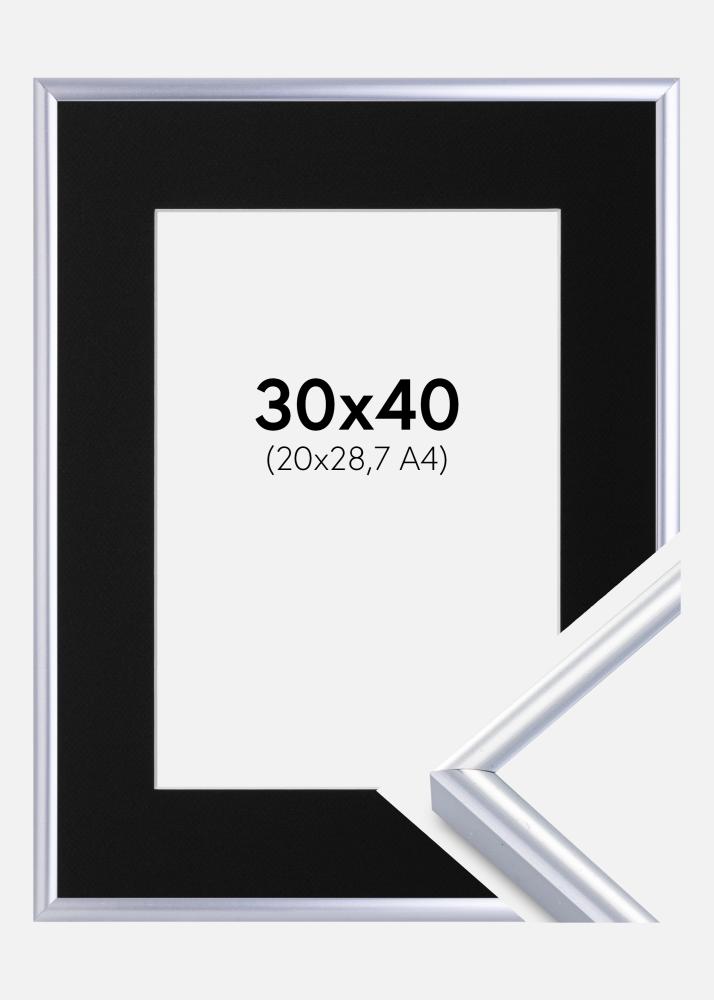Cornice Victoria Argento 30x40 cm - Passe-partout Nero 21x29,7 cm (A4)