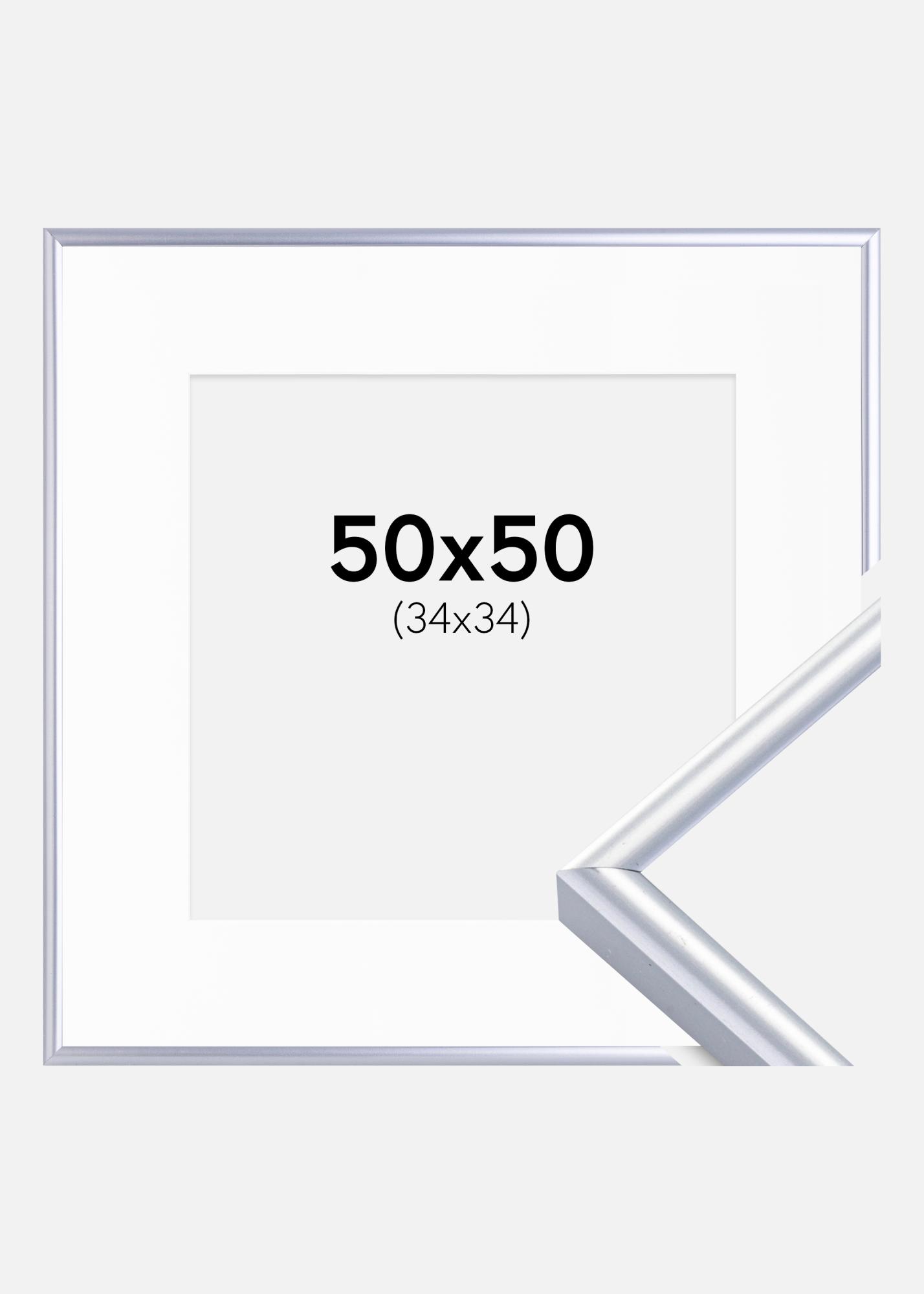 Cornice Victoria Argento 50x50 cm - Passe-partout Bianco 35x35 cm