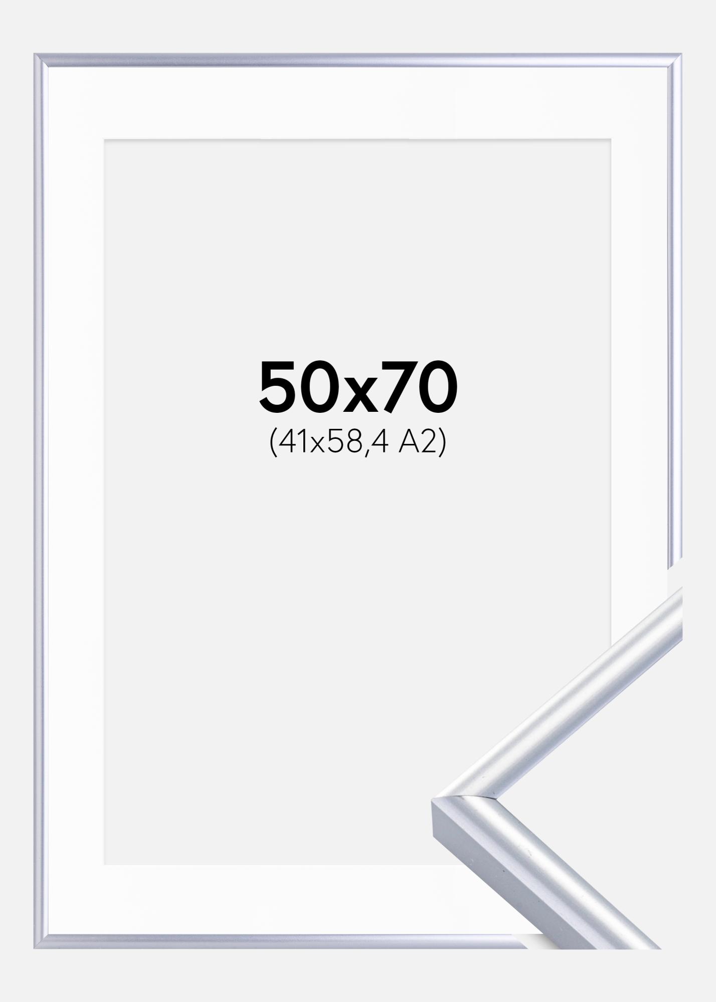 Cornice Victoria Argento 50x70 cm - Passe-partout Bianco 42x59,4 cm (A2)