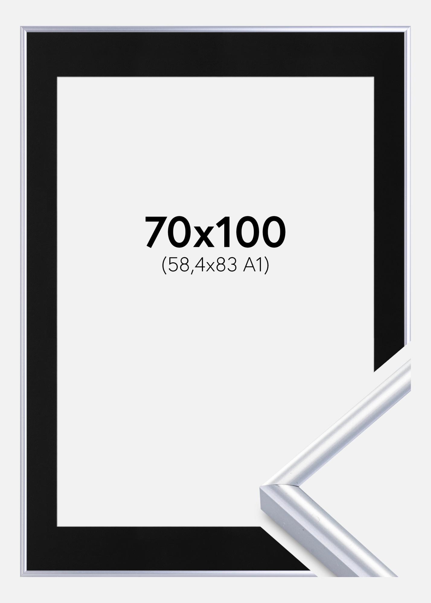 Cornice Victoria Argento 70x100 cm - Passe-partout Nero 59,4x84 cm (A1)