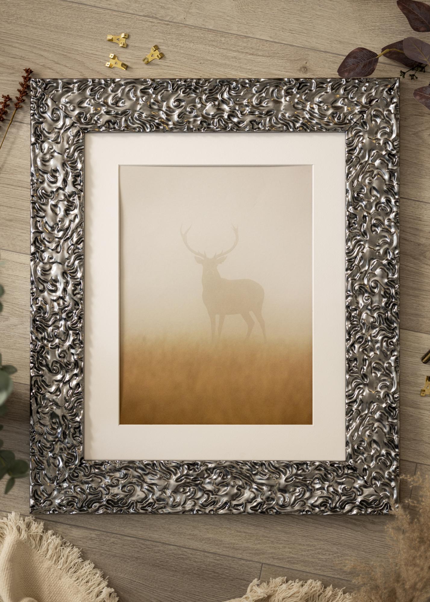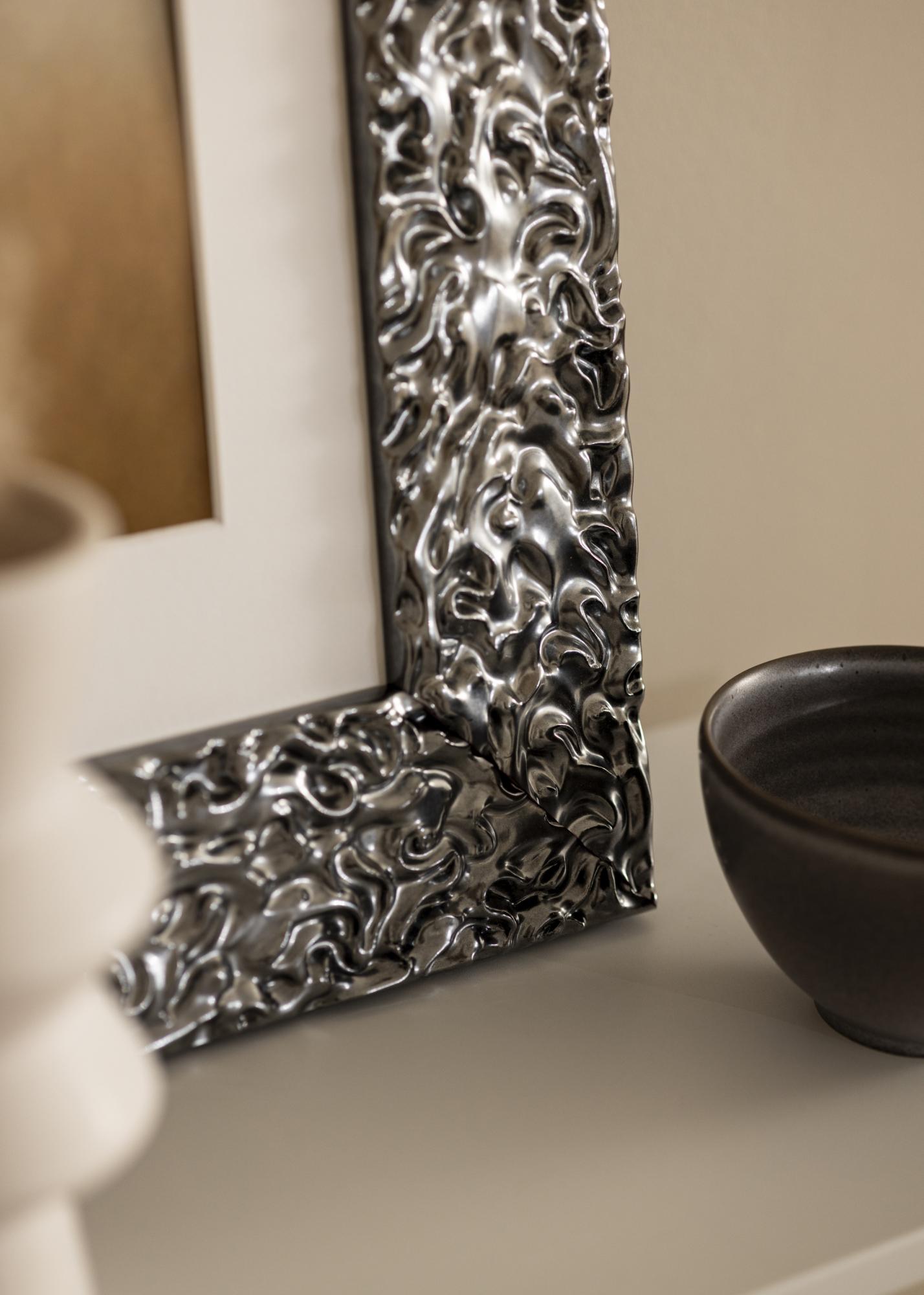 Questa cornice ha una larghezza della lista di 81 mm e una profondità di 23 mm, conferendole una presenza robusta e impressionante sulla parete. Realizzata in pino, combina durabilità ed estetica, rendendola una scelta eccellente sia per interni moderni che classici. Il colore argento dona una sensazione di lusso e può essere facilmente abbinato a vari temi di colore nella tua casa.