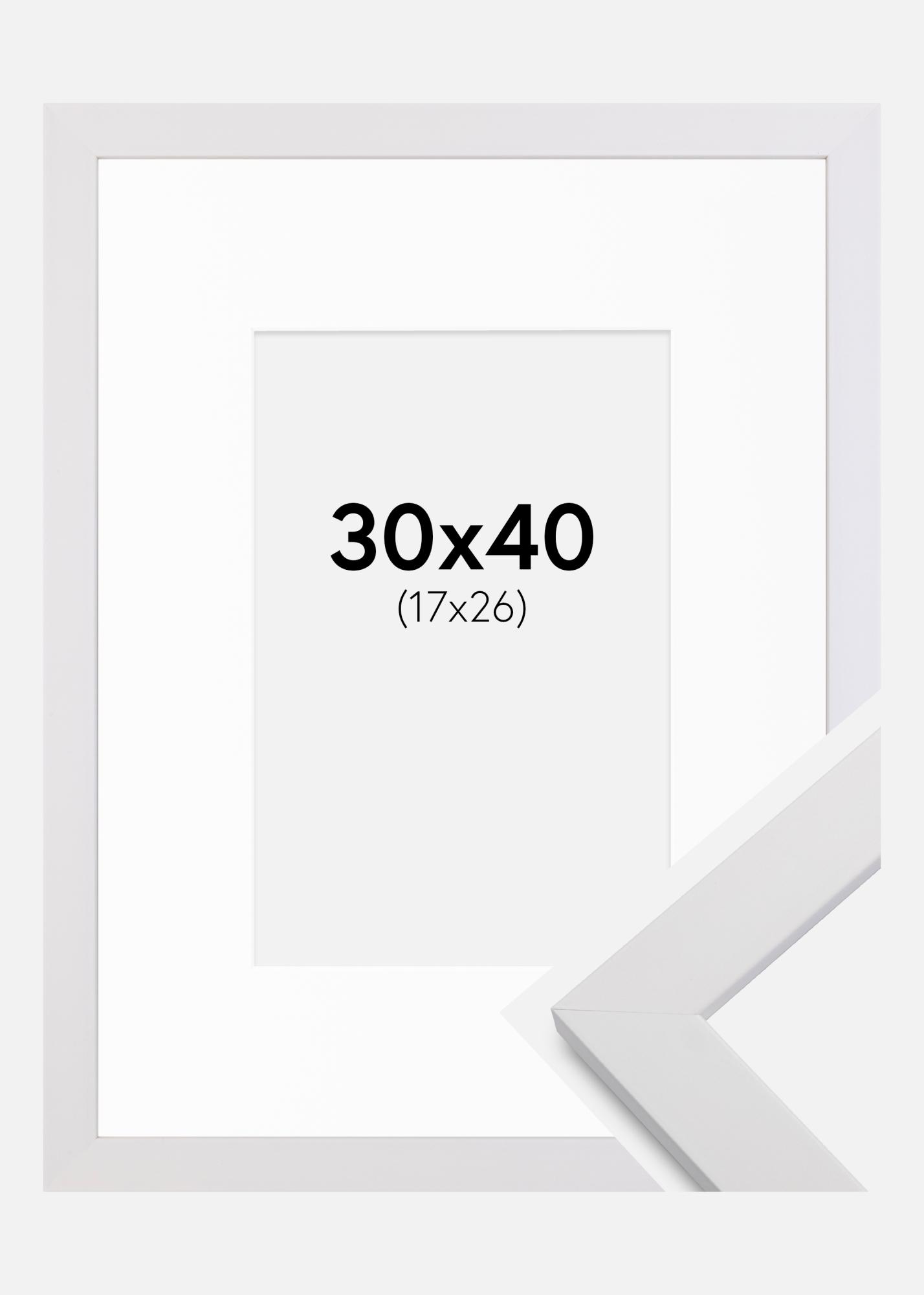 Cornice White Wood 30x40 cm - Passe-partout Bianco 18x27 cm