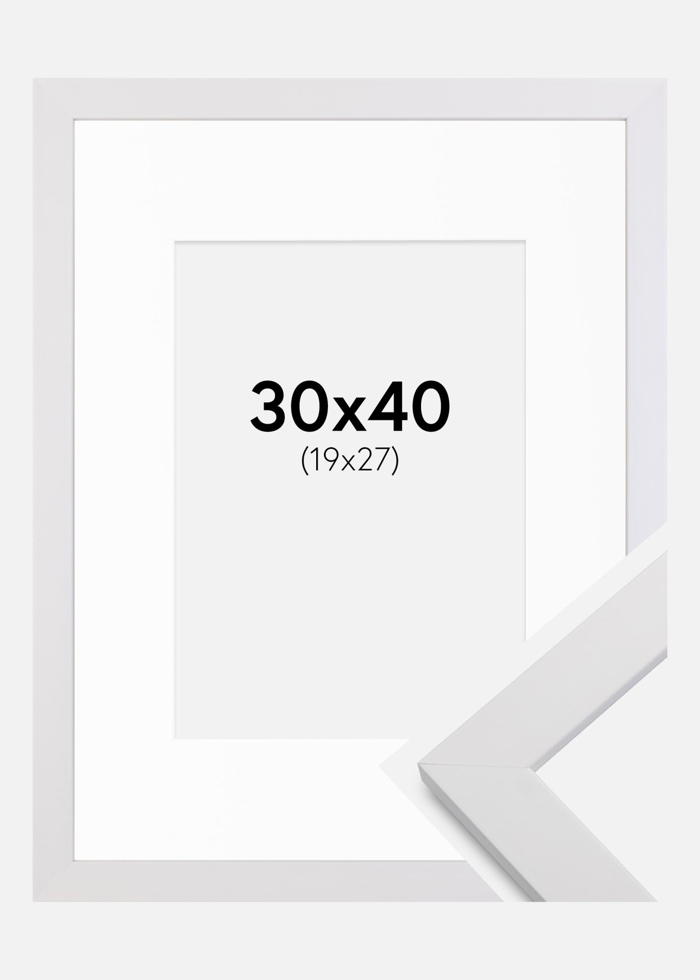 Cornice White Wood 30x40 cm - Passe-partout Bianco 20x28 cm