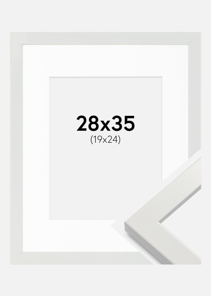 Cornice White Wood Glossy 28x35 cm - Passe-partout Bianco 20x25 cm