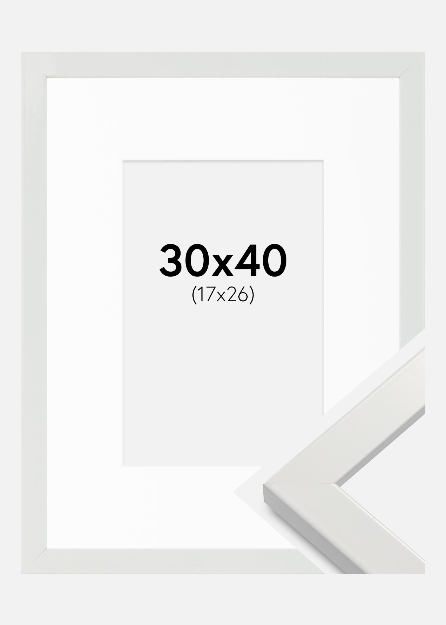 Cornice White Wood Glossy 30x40 cm - Passe-partout Bianco 18x27 cm