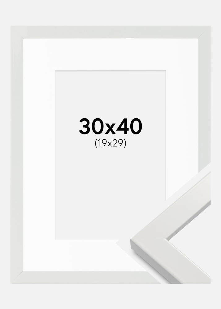 Cornice White Wood Glossy 30x40 cm - Passe-partout Bianco 20x30 cm