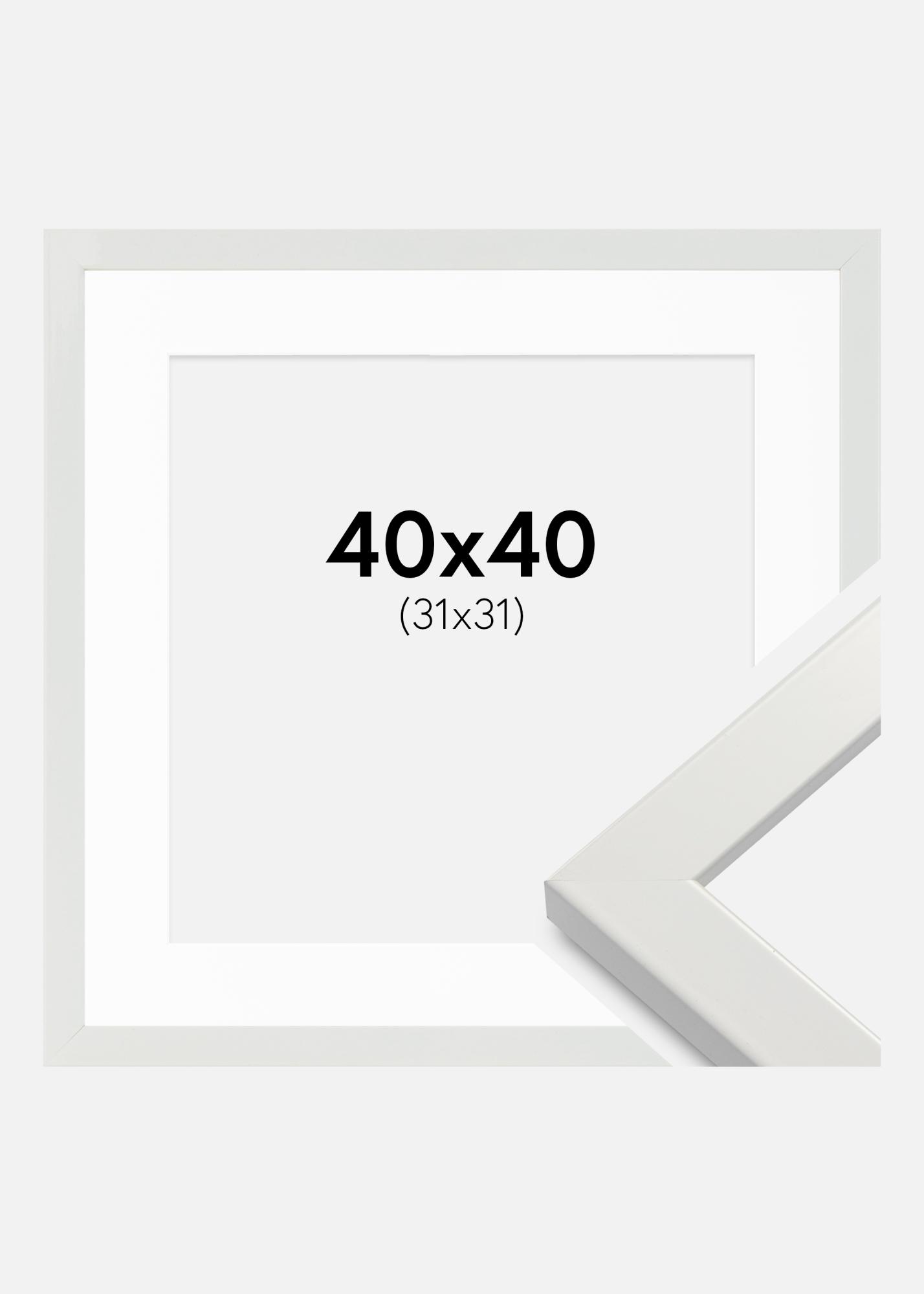 Cornice White Wood Glossy 40x40 cm - Passe-partout Bianco 32x32 cm