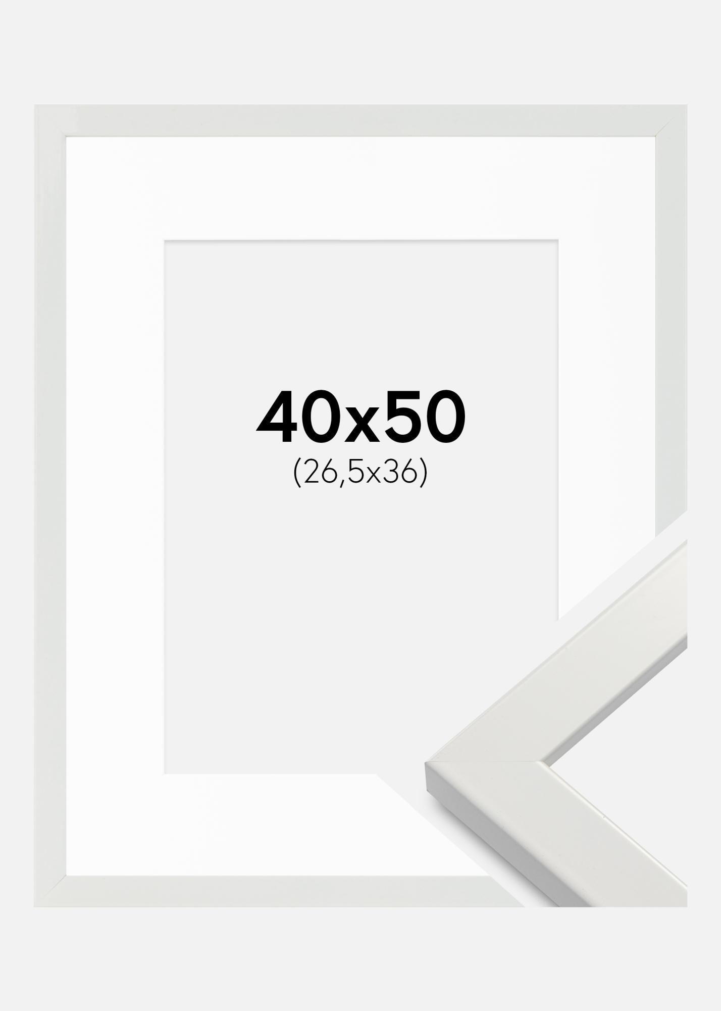 Cornice White Wood Glossy 40x50 cm - Passe-partout Bianco 27,5x37 cm