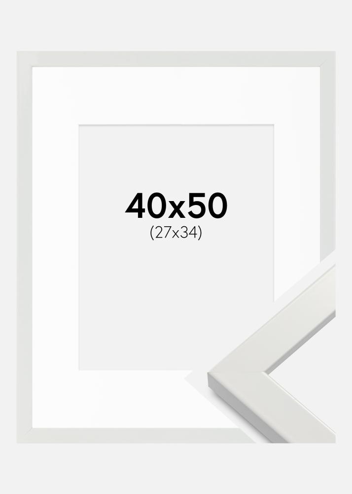 Cornice White Wood Glossy 40x50 cm - Passe-partout Bianco 28x35 cm