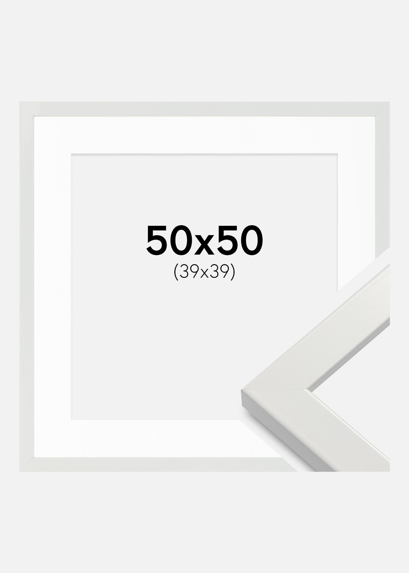 Cornice White Wood Glossy 50x50 cm - Passe-partout Bianco 40x40 cm