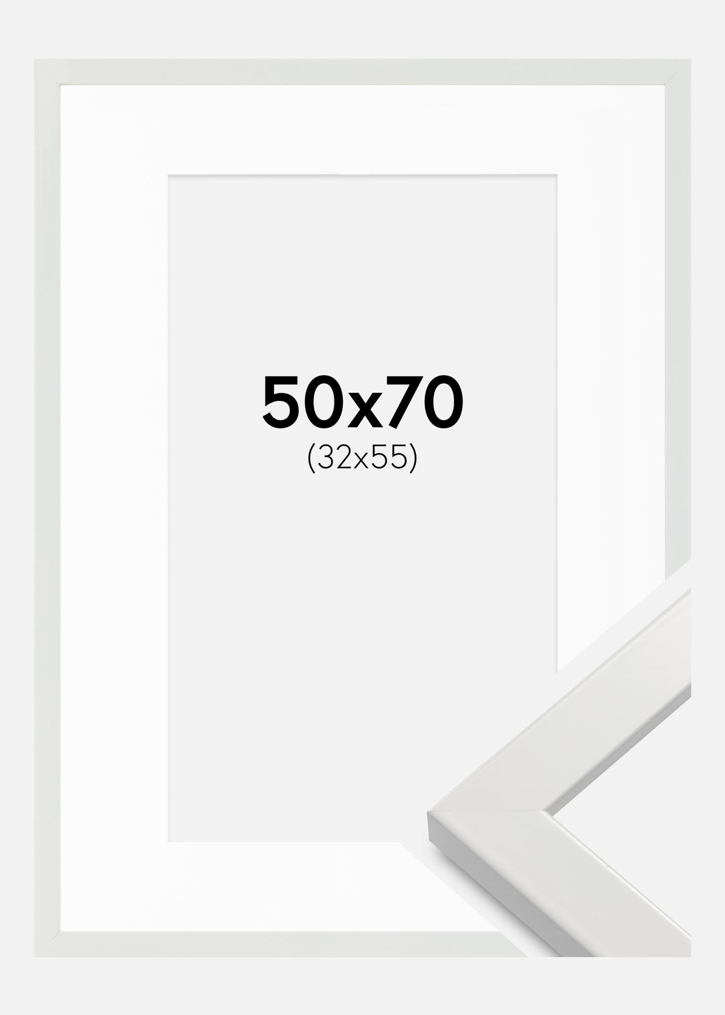 Cornice White Wood Glossy 50x70 cm - Passe-partout Bianco 33x56 cm